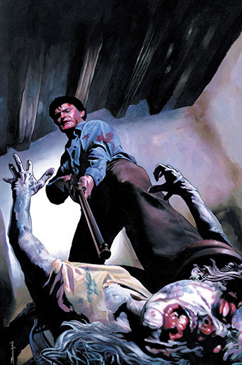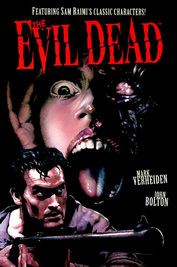 Comic book film adaptation of the first Evil Dead film. Writer Mark Verheiden (Battlestar Galactica, My Name Is Bruce) and illustrator John Bolton (God Save the Queen, Harlequin Valentine) present an exciting expansion on the classic horror film that introduced us to the powerful Book of the Dead, the relentlessly violent deadites, and Ash–one resilient, blood-soaked survivor. Now an iconic horror hero, relive Ash’s first visit to the cabin that brought him face to face with the delectably deranged deadites who possessed his girlfriend and friends…and turned “the perfect place to get laid” into a house of fear and fury. Return to the original nonstop gore-fest and experience the thrills, gags, and gagging anew, with unexpected extra scenes.