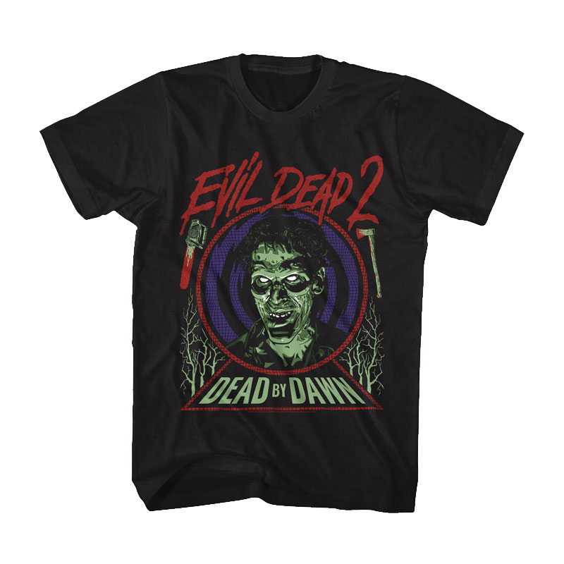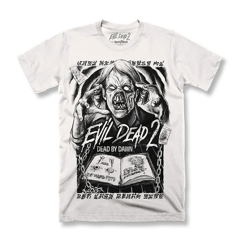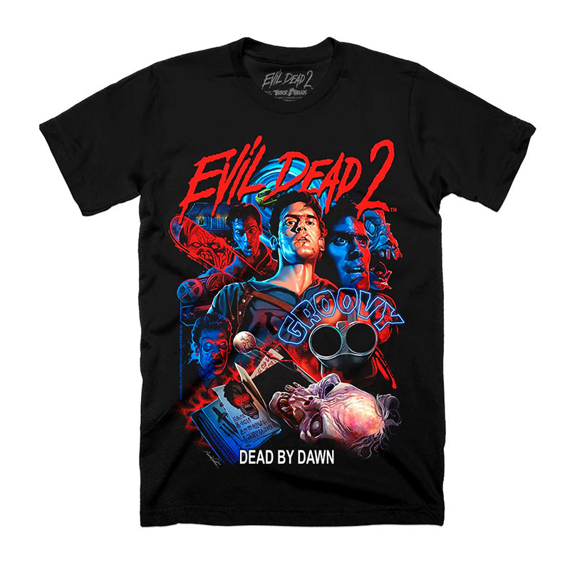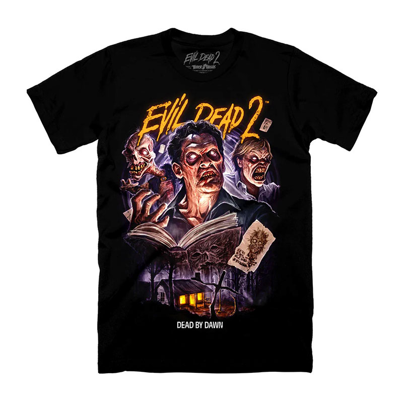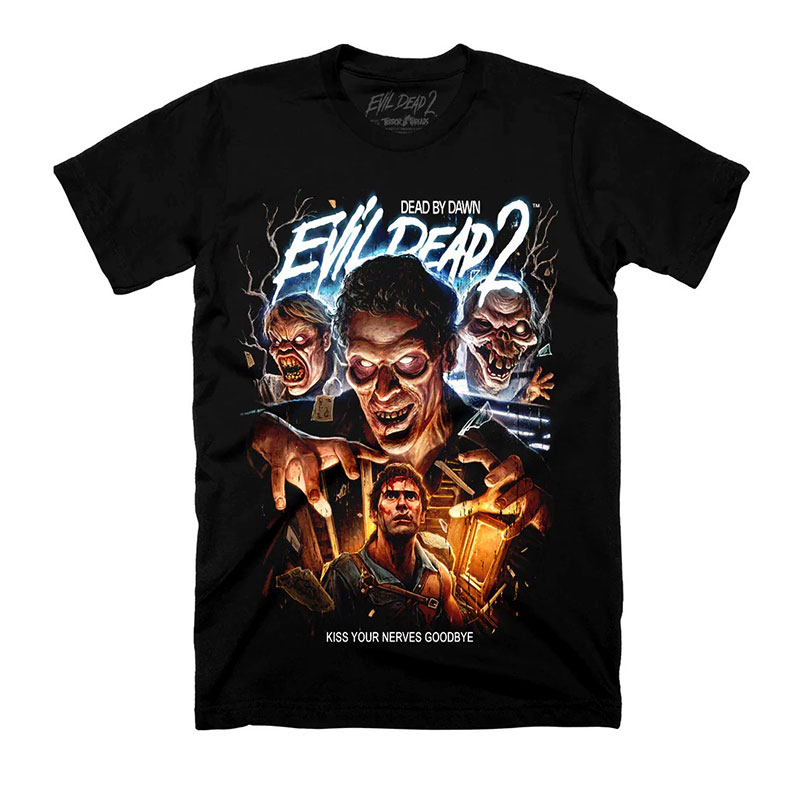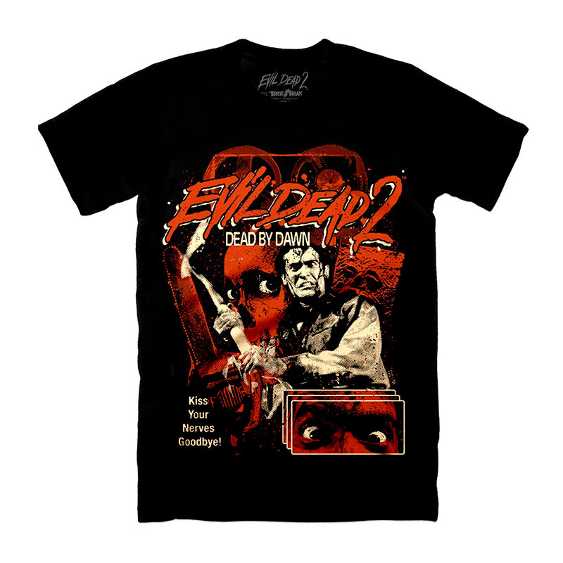 Collection of officially licensed Evil Dead 2 shirts designed and produced by various horror apparel brands. Please note: we do not sell or keep stock of any of these shirts on our site. This is page is strictly for archival purposes. Please visit the respective shops to buy their shirts.