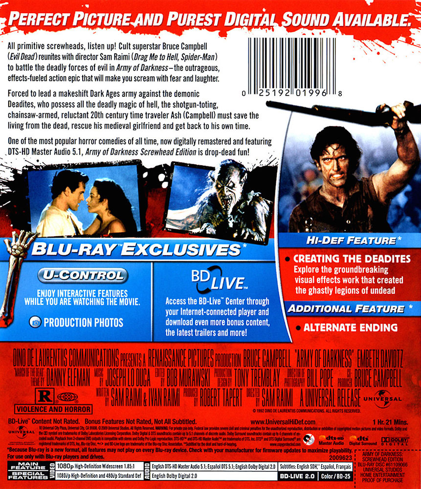 • English audio commentary by director Sam Raimi, Bruce Campbell and others (DTS HD Master Audio Stereo)